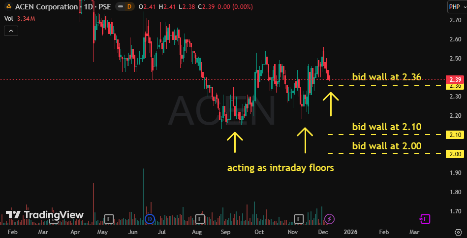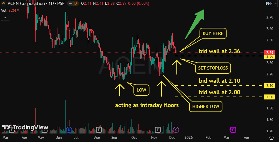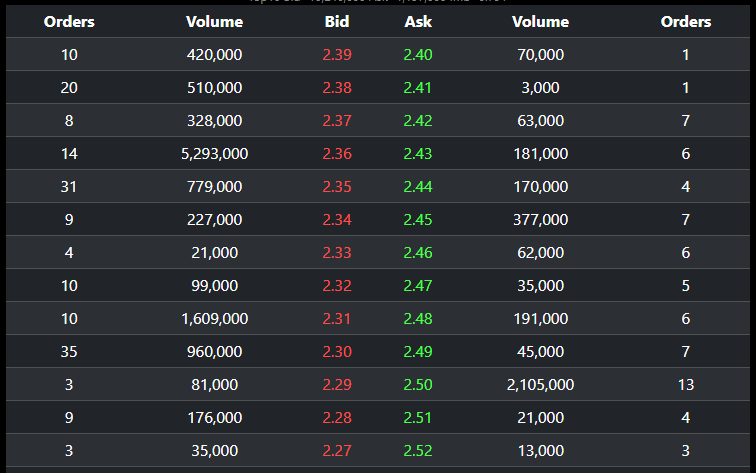 1. Mark the bid wall. This is your intraday floor (ex: 2.36).